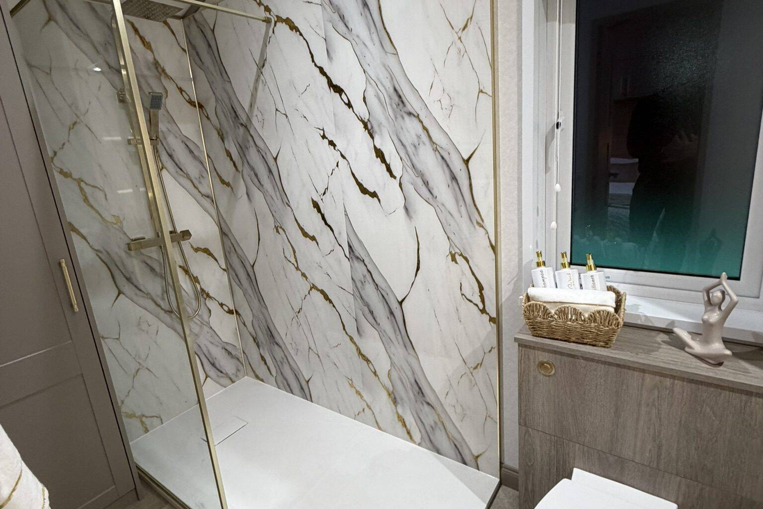 En suite walk in shower with